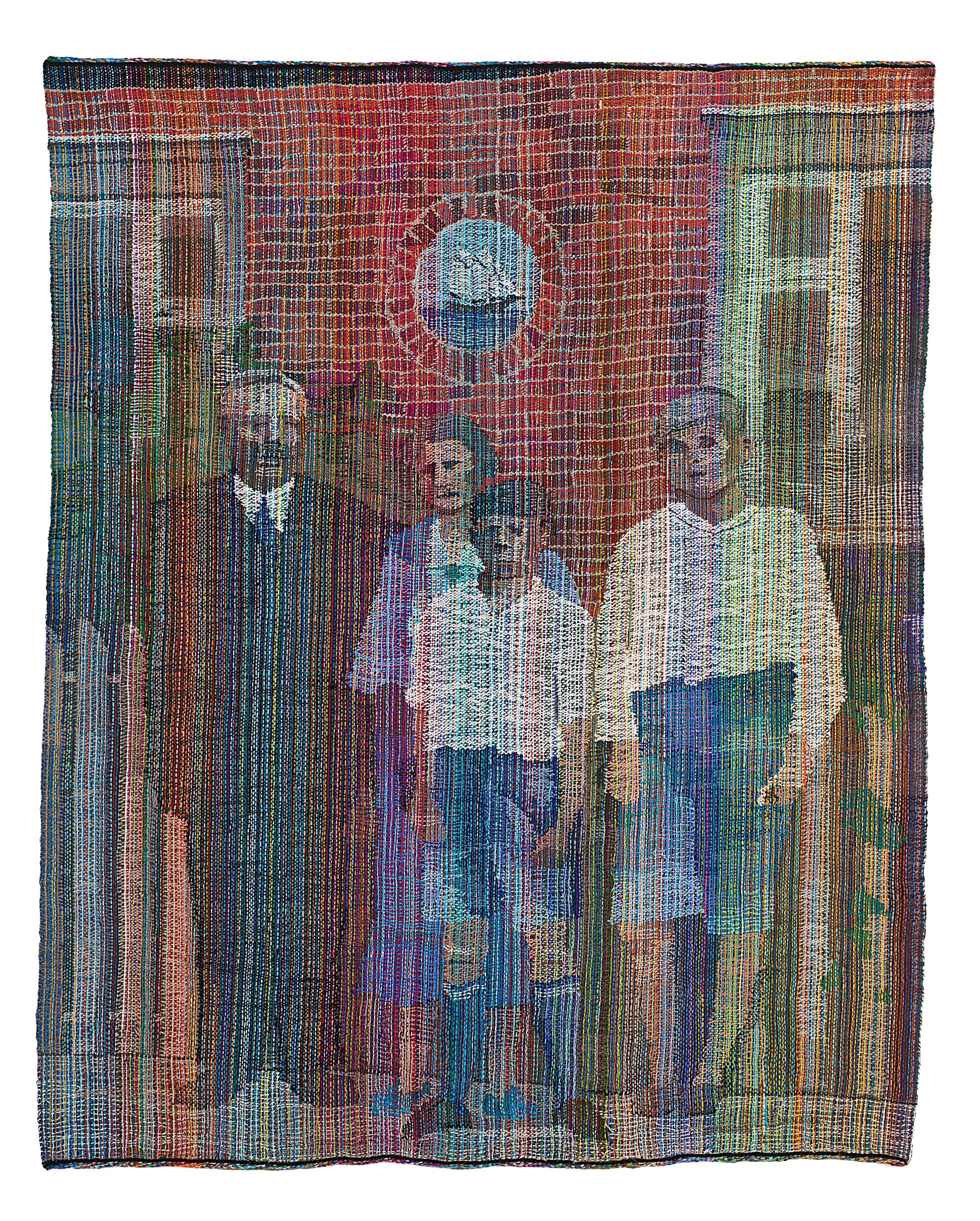 Jeg deltar med teppet «Gudrunn og bukken Burman» som er en del av billedvevserien «Oldemorfamilien»